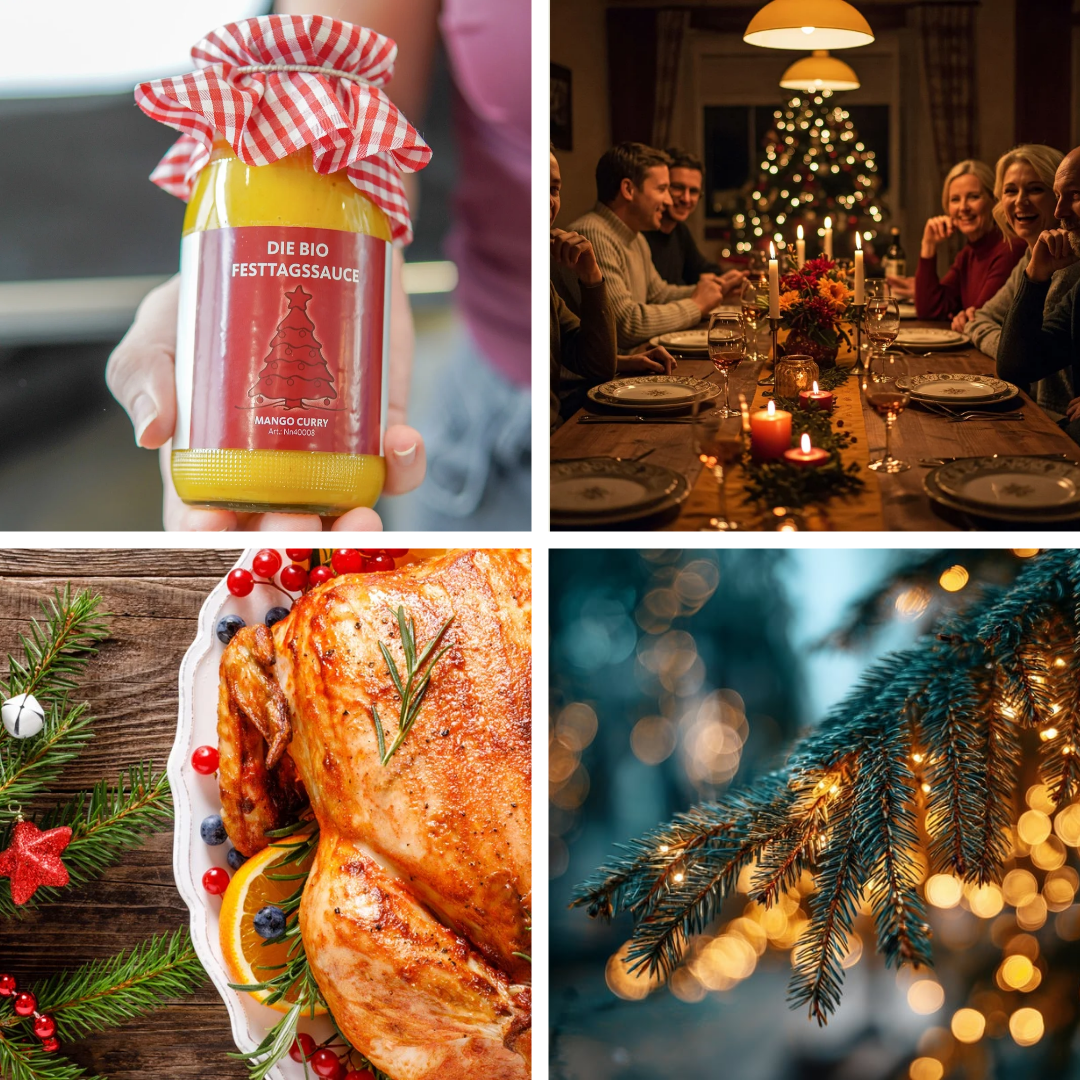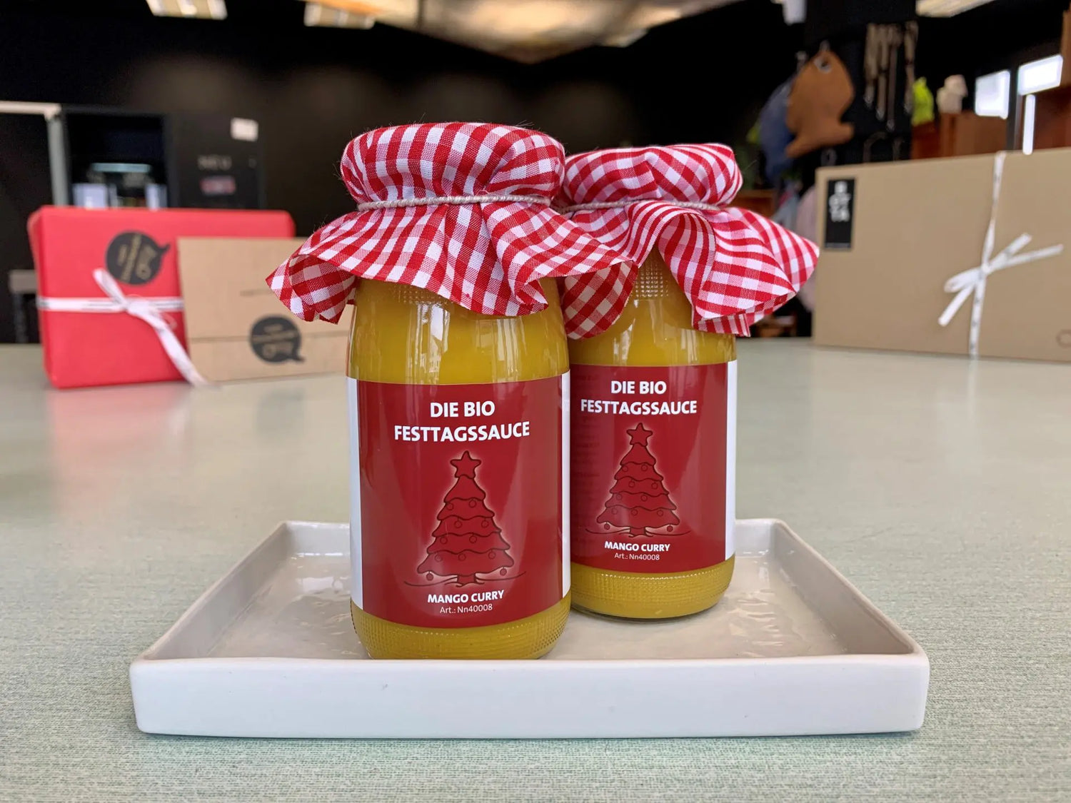 Unsere Bio Festtagssauce Mango Curry bringt exotische Fruchtigkeit und feine Würze in festliche Gerichte. Die harmonische Kombination aus reifer Mango und mildem Curry verleiht jedem Menü eine besondere, weihnachtliche Note.